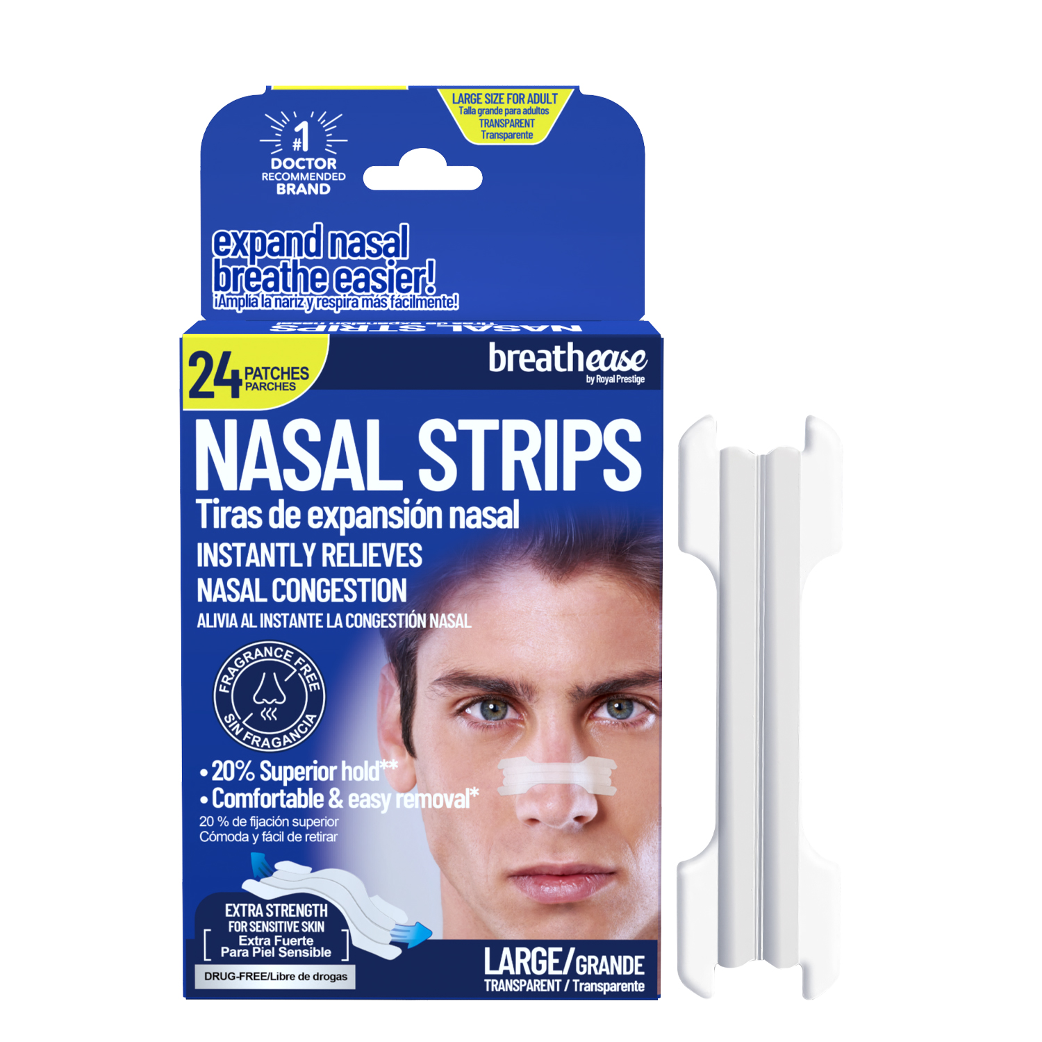Breathease Clear Nasal Strips gently open your nasal passages for easier breathing and quieter sleep. The crystal-clear, nearly invisible design blends seamlessly with any skin tone – perfect for discreet daytime or nighttime use.
