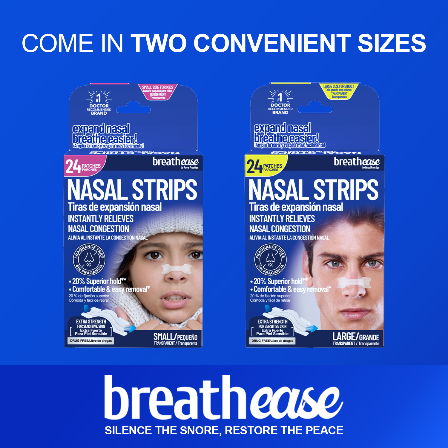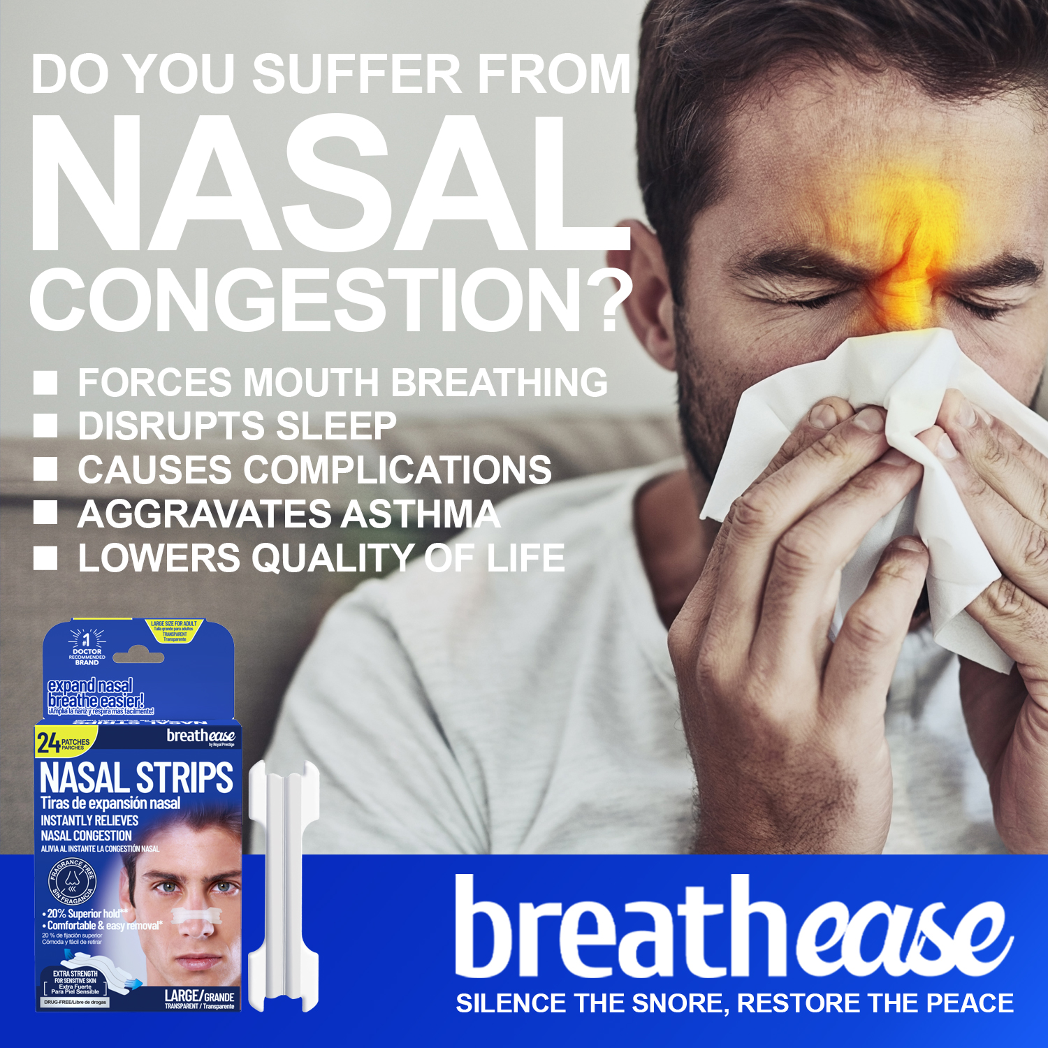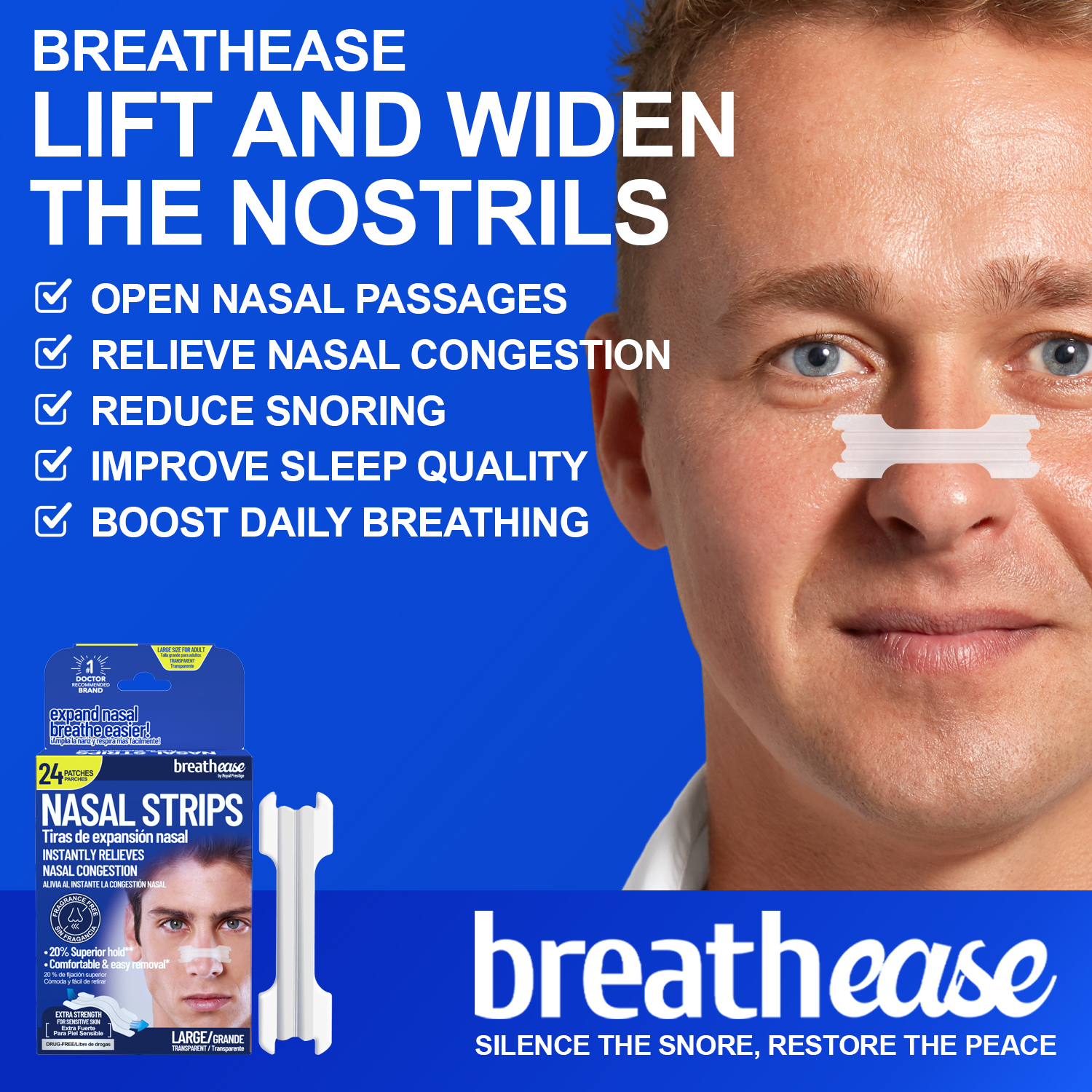 Breathe easy. Sleep peacefully. With Breathease Clear Nasal Strips.