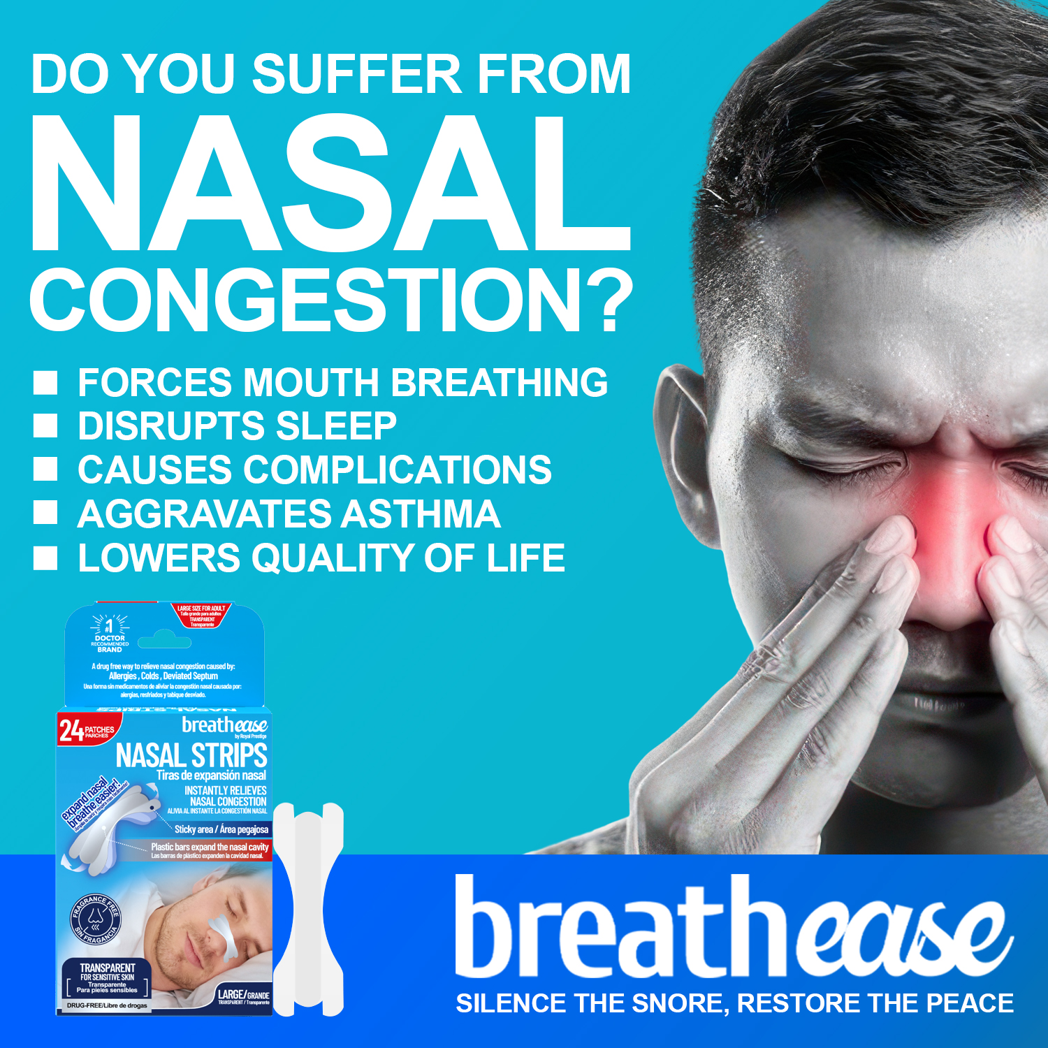 • How They Work: Flexible spring-like bands gently lift and flare open the nostrils, reducing nasal resistance for easier breathing. Drug-free and mechanical — no meds involved.