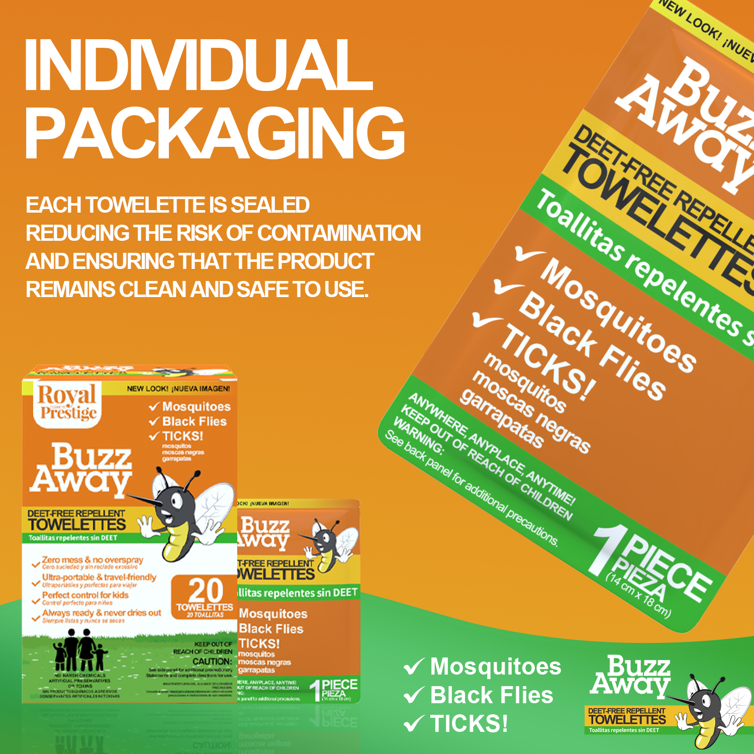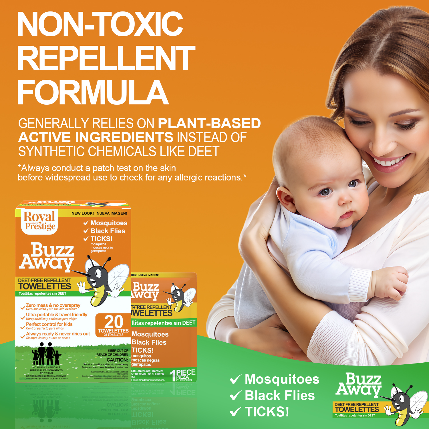 Tired of harsh chemical sprays and sticky residue? Our BuzzAway Non-Toxic Repellent Towelettes offer the perfect, worry-free solution for keeping your family safe from mosquitoes, gnats, and biting flies. We deliver nature’s best defense in the most convenient format—a single-use, soothing wipe.