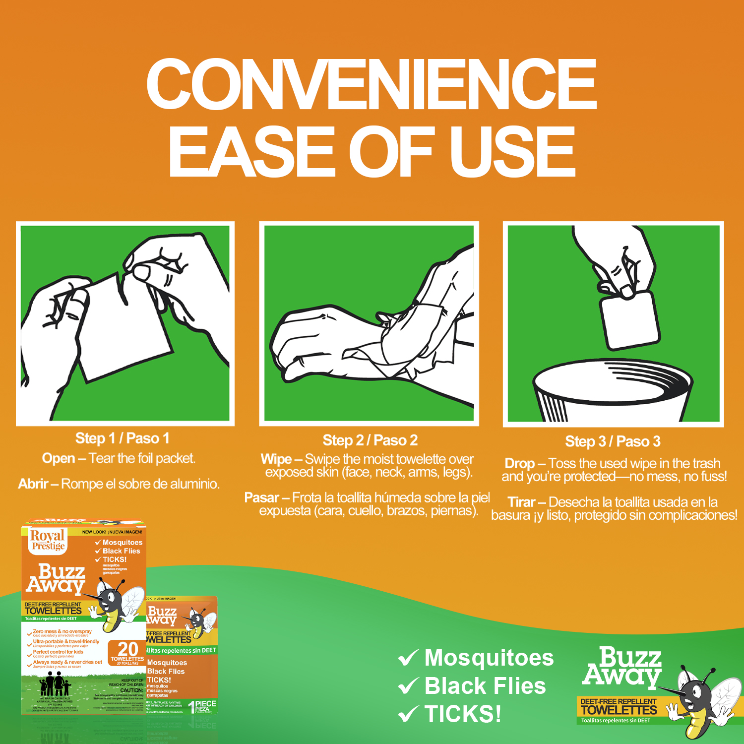 • Guaranteed Freshness: The airtight, foil-lined seal locks in the potency of the Lemongrass oil, ensuring that the last BuzzAway wipe you use is as effective as the first.