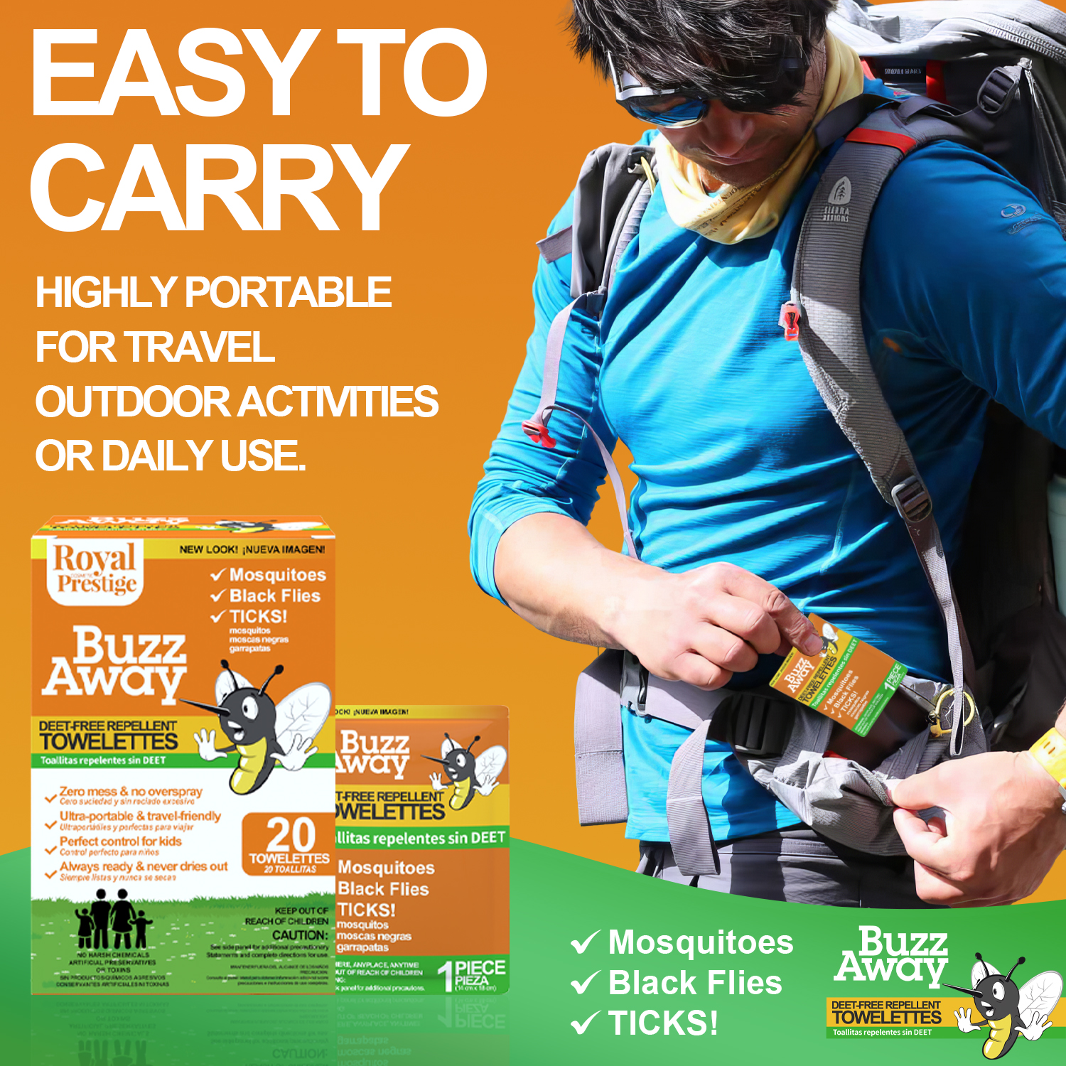 🌿 BuzzAway Non-Toxic Repellent Towelettes: Protection, Naturally.