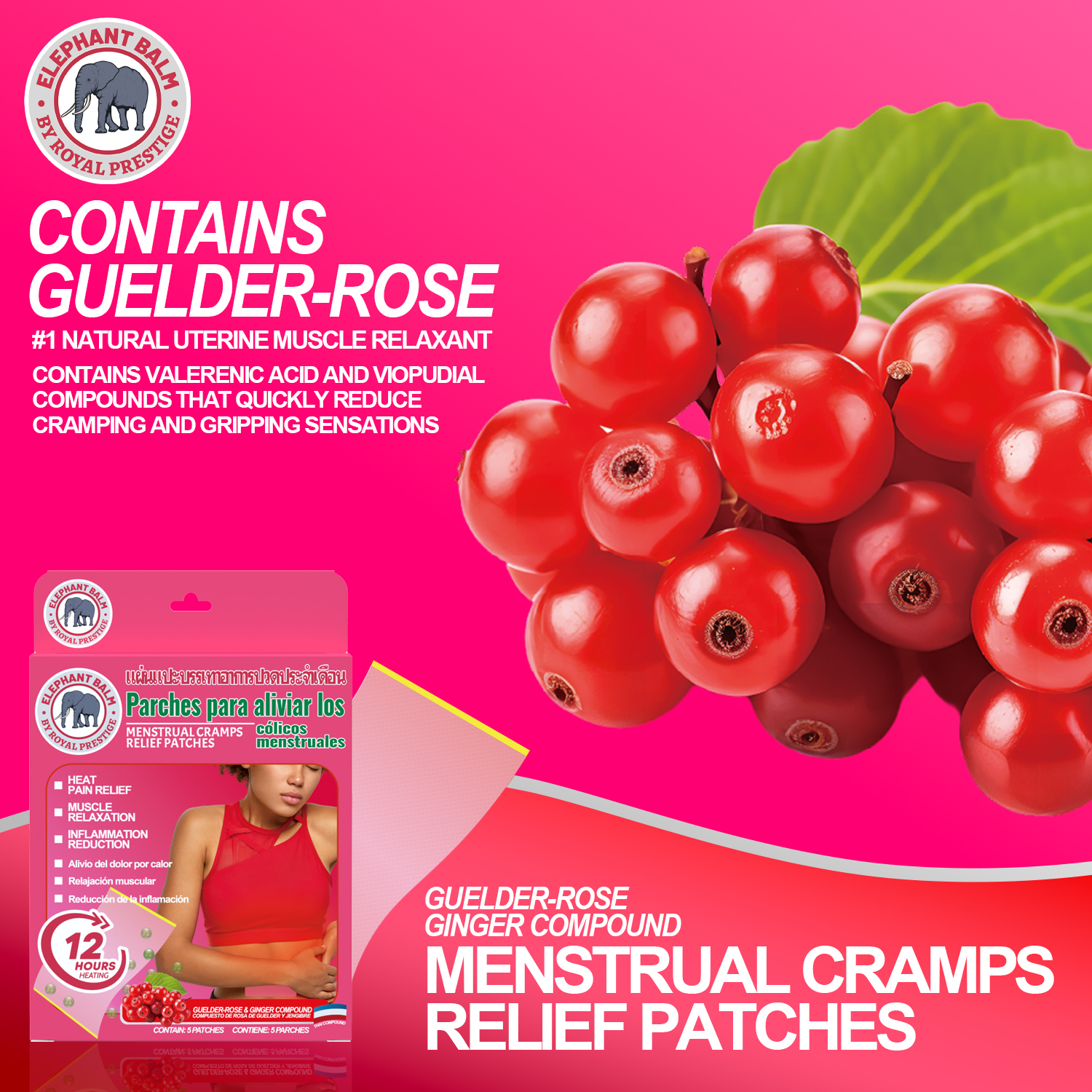 At the heart of our patches is Guelder-Rose (Viburnum opulus), known throughout history as Cramp Bark. This remarkable botanical is traditionally revered for its antispasmodic properties, which can help